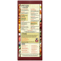 Showcase your everyday menu or daily specials in this crisp Menu Solutions K22BD BURG K22-Kent 4 1/4" x 14" single panel / double-sided burgundy menu board. Made of durable burgundy leatherette, this menu board is water-resistant and easy-to-clean, making it great for constant use at your restaurant, hotel, country club, cafe, or catered event. A top and bottom strip of material frame your menu and draw your guests' eyes to your menu options and advertised specials. The framing firmly holds your menu in place and prevents bending or ripping the paper's edge, yet it provides enough flexibility to easily and frequently change the signage. This versatility ensures you can use your menu board for a variety of functions, such as advertising seasonal specials, sharing wedding reception menu options, listing available alcoholic beverages, and more.