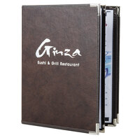 Present your offerings in style with this Menu Solutions RS160BD Royal Select Series 4 1/4" x 14" customizable leather-like 8 view booklet menu cover. With a textured, leather-like exterior, this menu cover promotes a professional appearance in any setting. Its 8 pockets accommodate 4 1/4" x 14" inserts, making it perfect for presenting specialty menus or listing drink and dessert selections. Plus, if your menu changes frequently, the inserts can easily be removed and replaced within seconds.