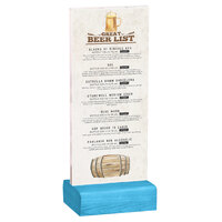 Showcase your daily specials and wine or drink menus with ease using this Menu Solutions WBCL-A 4" x 6" clear acrylic table tent with a solid sky blue wooden base. Two durable pieces of clear acrylic easily hold menus, wine lists, or drink menus so you can see your insert from either side. This sleek tent features an attractive sky blue color and an easy-to-clean wooden base. It's great for contemporary restaurants and bars as it easily displays menus and specials at your tabletops or bars without taking up a lot of space.