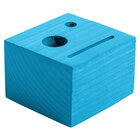 Find a fresh, and modern way to present checks and collect money thanks to this Menu Solutions WDBLOCK-CHECK 3 1/2" x 3 1/2" x 2 1/2" denim wood block check presenter. Its block design adds the perfect flair to any dining room, and it will immediately strike your guests as stylish and innovative.. Plus, the wood construction is sturdy for daily use in your restaurant or cafe.