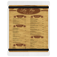 Bring a modern look to your establishment with this Menu Solutions WDRBB-A white wash 5 1/2" x 8 1/2" wood menu board with rubber band straps! The flexible rubber band straps hold paper in place while making it easy to switch out sheets of paper as guests come and go, menus change, and specials rotate. This sleek menu holder features an attractive white wash finish and a durable wood design. It's great for restaurants and bars, and is perfect for presenting menus, wine lists, and daily specials with ease.
