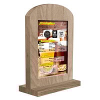 Menu Solutions WTARCH-A-2S 4" x 6" Weathered Walnut Arched Wood Menu Tent with Angled Base