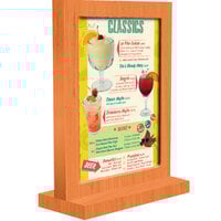 This menu tent's slim design makes it ideal for areas where space is limited both on the table and at your wait stations. At the same time, the durable wooden design ensures longevity in a commercial setting. This menu tent holds a 5" x 7" insert and is a multi-purpose addition to modern cafes, bistros, breweries, and tasting rooms. It also includes 2 clear sheet protectors to provide protection against spills and other messes. Ideal for use on tabletops and bar counters, this wood menu tent is the convenient advertising tool that you've been searching for.