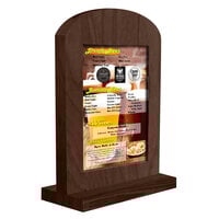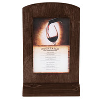 Menu Solutions WTARCH-B-2S 5" x 7" Walnut Arched Wood Menu Tent with Angled Base