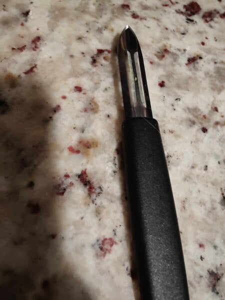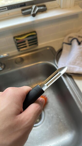This peeler has a great, straightforward design. This makes it easy to clean, not having any small crevices for debris to get stuck in. The blade is sharp and makes short work of even tough-skinned fruits and vegetables.