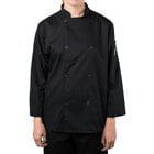 Provide your female chefs with this size L Mercer Culinary Genesis® women's black customizable long sleeve chef jacket to keep them looking their best in your restaurant or bistro kitchen! Made from a 65/35 poly-cotton blend twill, this jacket is comfortable and lightweight to keep your staff cool as they cook. While the twin needling on the seams and bar tacking guarantees exceptional durability in any foodservice environment, the center back kick pleat offers a feminine touch to the overall look and shape. In addition, each garment has a design which gives it a professional and timeless look, and two inside collar buttons to keep the neck line fastened without constricting the wearer's movement.