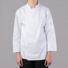 Provide your female chefs with this size XS Mercer Culinary Genesis® women's white customizable long sleeve chef jacket to keep them looking their best in your restaurant or bistro kitchen! Made from a 65/35 cotton-poly blend twill, this jacket is comfortable and lightweight to keep your staff cool as they cook. While the twin needling on the seams and bar tacking guarantees exceptional durability in any foodservice environment, the center back kick pleat offers a feminine touch to the overall look and shape. In addition, each garment has a design which gives it a professional and timeless look, and two inside collar buttons to keep the neck line fastened without constricting the wearer's movement.