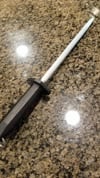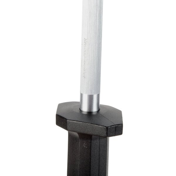 I have been using this honing/sharpening steel for over 7 years now, and it's performed great and held up very well. Honestly I like it better than my old Wusthoff. Take a close look at the handle and you'll see it's grippy and comfortable, and has a big protective barrier to keep your blade away from your hands so that you can work fast and not worry about slipping. Plus it has a ring for hanging, and comes in a 12" length. I'm helping somebody set up her kitchen and am recommending this steel BOTH for its performance and its value.