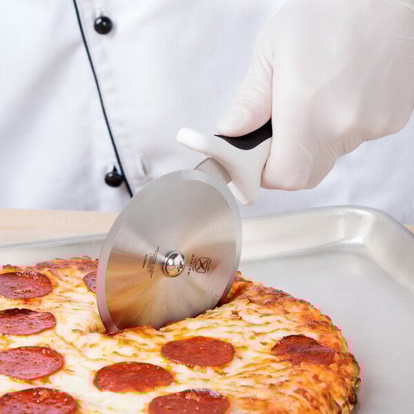 Made of the same durable, stain-free high carbon steel as the rest of the Mercer Culinary Millennia® line, you can be confident that this cutter is designed to handle the rigors of commercial use. The 4" wheel features a sharp, precision-ground edge to reduce operator strain and make it easy to glide through your pizzas.