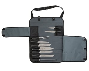 The heavy-duty, nylon construction of the storage roll is lightweight, yet resistant to abrasions, tears, and scuffs. With ten pockets, it offers easy storage for all of your ZüM® knives. A detachable shoulder strap makes this storage roll extremely convenient for chefs on the go, allowing you to take your trusted tools with you wherever you travel!