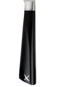 Below the blades, shortened bolsters provide better balance and easy honing with full blade edge exposure. An ergonomically-shaped Delrin handle with a rounded spine gives each piece increased comfort and reduced fatigue. At the same time, the full tang design extends the entire length of the handle for exceptional balance and strength.
