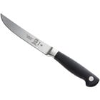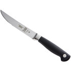 Ships free withBring the professional quality that you've come to expect from Mercer Culinary Cutlery to your commercial kitchen with this Mercer Culinary M21922 Genesis® 5" steak knife. This knife is designed with an ergonomic Santoprene handle to guide the one piece, fully forged, razor sharp blade for superior performance. The Santoprene that comprises the handle is a high performance, soft material that offers a safe and comfortable non-slip grip for all day use. It will not break down when exposed to kitchen oils, and is able to withstand extreme hot and cold temperatures. The smooth edge of this steak knife will provide patrons with a clean cut into the protein and will not tear the meat fibers like a serrated knife will.