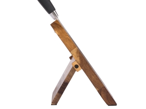 - Uses strong, hidden magnets to hold knives in place