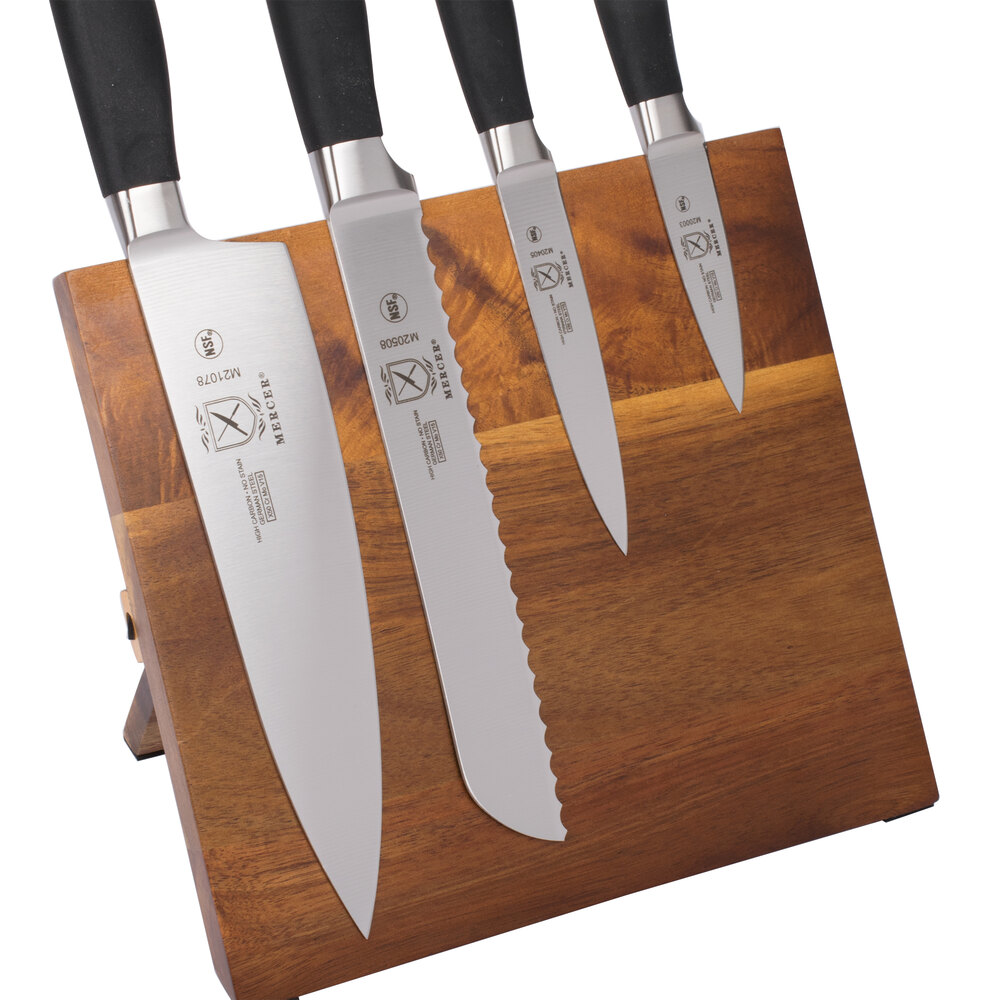 Mercer Culinary M21960AC Genesis® 5-Piece Acacia Magnetic Board and Knife Set