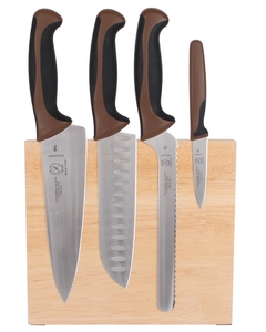 Mercer Culinary M21980BR Millennia Colors® 5-Piece Rubberwood Magnetic Board and Brown Handle Knife Set