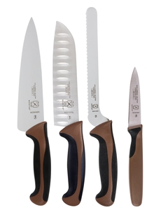 The knife handles are made from a combination of soft, comfortable Santoprene and durable polypropylene. Plus, you can designate the brown color-coded handles for a specific cooking purpose and help prevent cross-contamination.