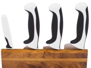 The knife handles are made from a combination of soft, comfortable Santoprene and durable polypropylene. Plus, you can designate the white-colored handles for a specific cooking purpose and help prevent cross-contamination.