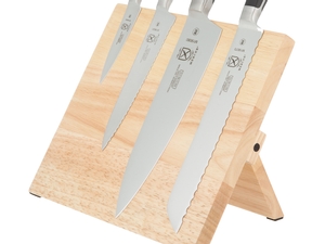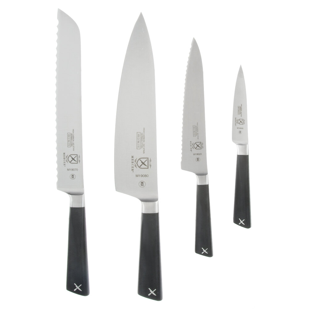 This set includes 4 different Mercer Culinary ZüM® knives and a rubberwood board, giving you everything you need to quickly organize cutlery in the kitchen or for display cooking purposes. With its variety of knives, this set can help prep many different types of ingredients, saving you precious time and energy in the kitchen!