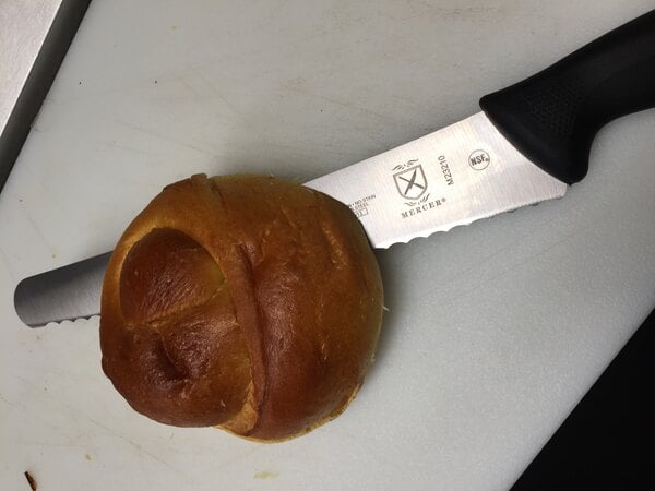 Combining the versatility and value your business requires with the professional quality you've come to expect from Mercer Culinary Cutlery, this knife is sure to become a favorite in your commercial kitchen! Use it to cut through tough outer skin of fruits, vegetables, breads, and meats. This makes it ideal for use in any bakery, sandwich shop, cafe, or restaurant.