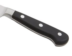 Holding almost as much importance as the blade itself, the handle provides the perfect grip to ensure safety and comfort in each slice. The Delrin handle's full tang design is triple riveted for durability and exceptional balance. It features a rounded spine for a more ergonomic and comfortable grip.