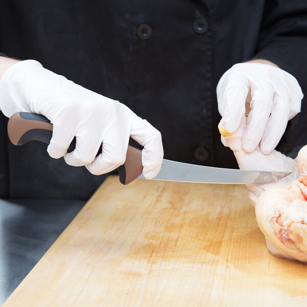 Thanks to the brown handle, you can pair this knife with other handle colors to create a color-coded system in your kitchen. Designate each color for a certain type of food to help reduce the risk of cross-contamination. Brown-colored knives are commonly used when working with cooked meat and poultry, making it easy for your staff to stay organized and prepare food safely!