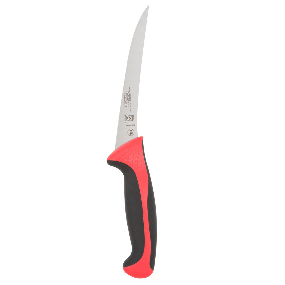 I love this knife! It debones quickly and easily. It stays sharp for a long time and the handle is comfortable to hold. This is great for color coding your restaurant.
