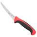 "This stiff boning knife is great quality. It's sturdy and holds up under heavy usage. The handle is comfortable and the red really makes it stand out."
