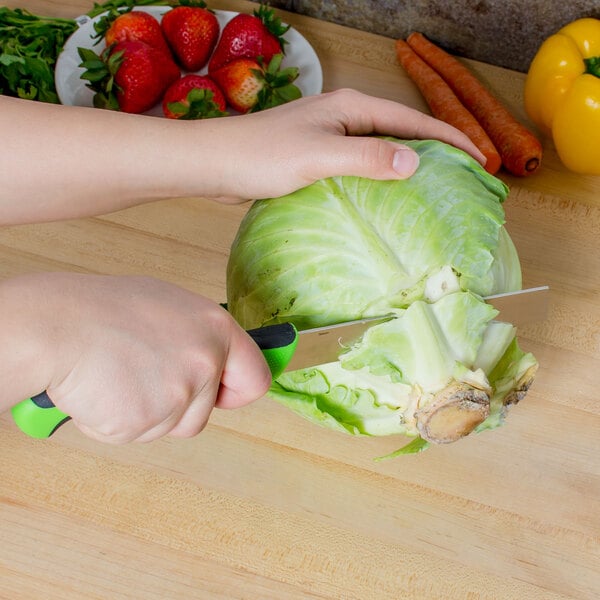 This knife features a green, color-coded handle to easily identify this as a produce knife. This helps to prevent cross-contamination, while also adding a pop of color to your kitchen.