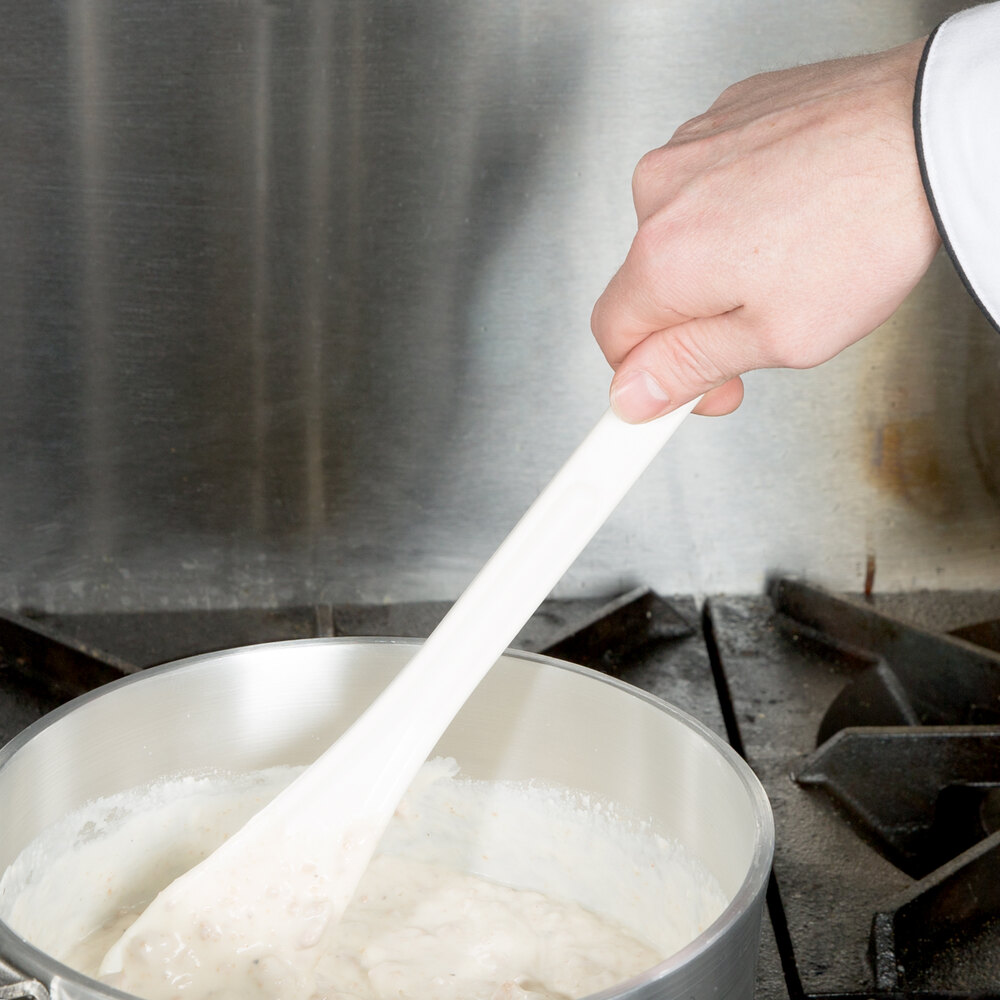 I really like and appreciate this unusual utensil. So full marks for the design, but I take off a star because the only option white color stains very quickly (one batch of chili will do it) which is not so aesthetically appealing. This would be perfect if it were offered in darker color options for those of us who like our utensils in crocks on the counter.