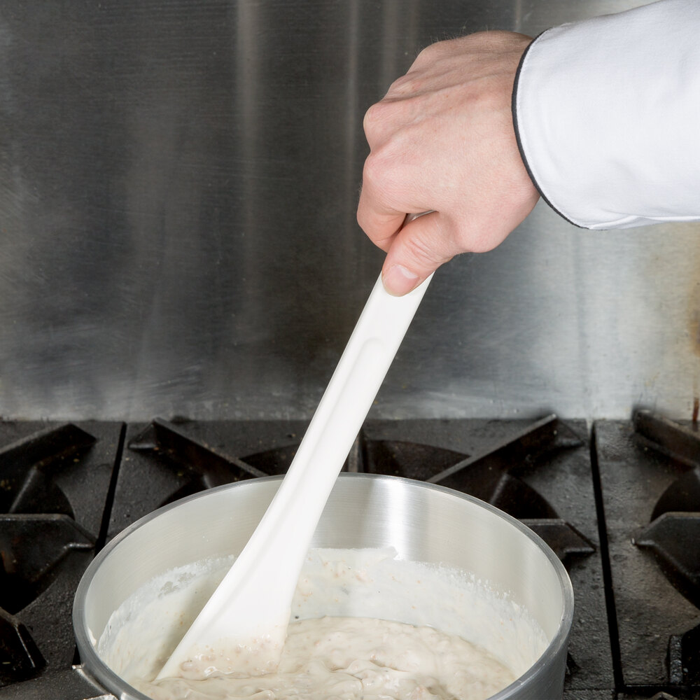 I really like and appreciate this unusual utensil. So full marks for the design, but I take off a star because the only option white color stains very quickly (one batch of chili will do it) which is not so aesthetically appealing. This would be perfect if it were offered in darker color options for those of us who like our utensils in crocks on the counter.