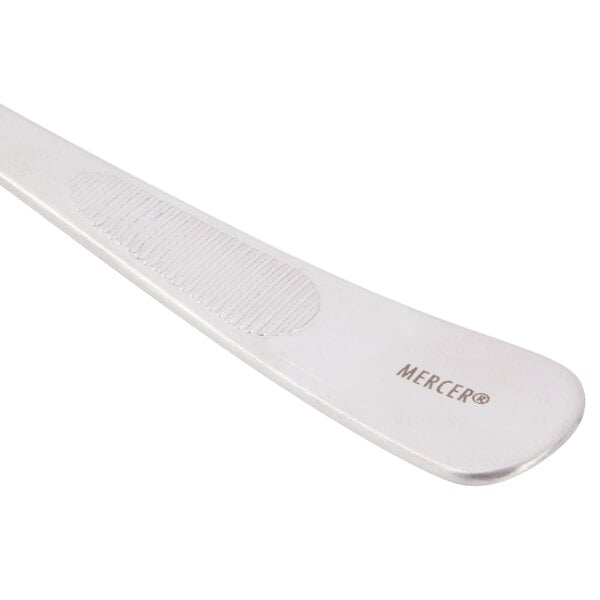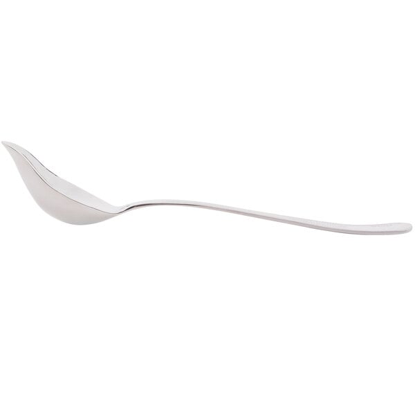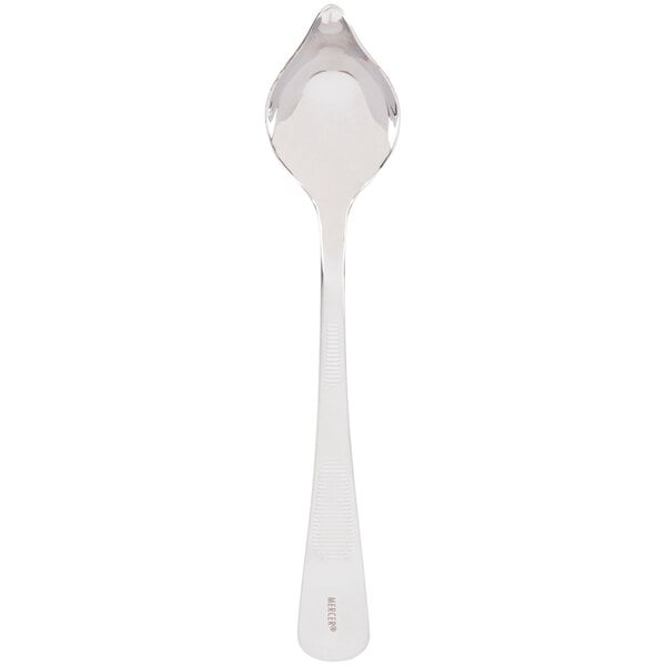 Use this Mercer Culinary M35143 0.4 oz. saucier spoon with a tapered spout to drizzle petite portions of sauces, dressing, and oils over your main courses or desserts. Designed for detail work, this saucier spoon allows you to pour the perfect amount of liquid in exactly the right place on the plate. It's ideal for precise plating applications, so you can add detail to any dish at your hotel, event, bakery, or upscale restaurant.