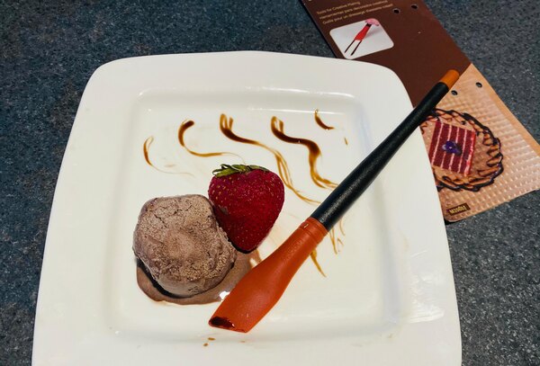 I love my Mercer Culinary Angle plating tool. We do a lot of dinner parties and having this tool to finish off the plates is just what we needed. It makes decorating plates so much easier, especially with the angled brush!
