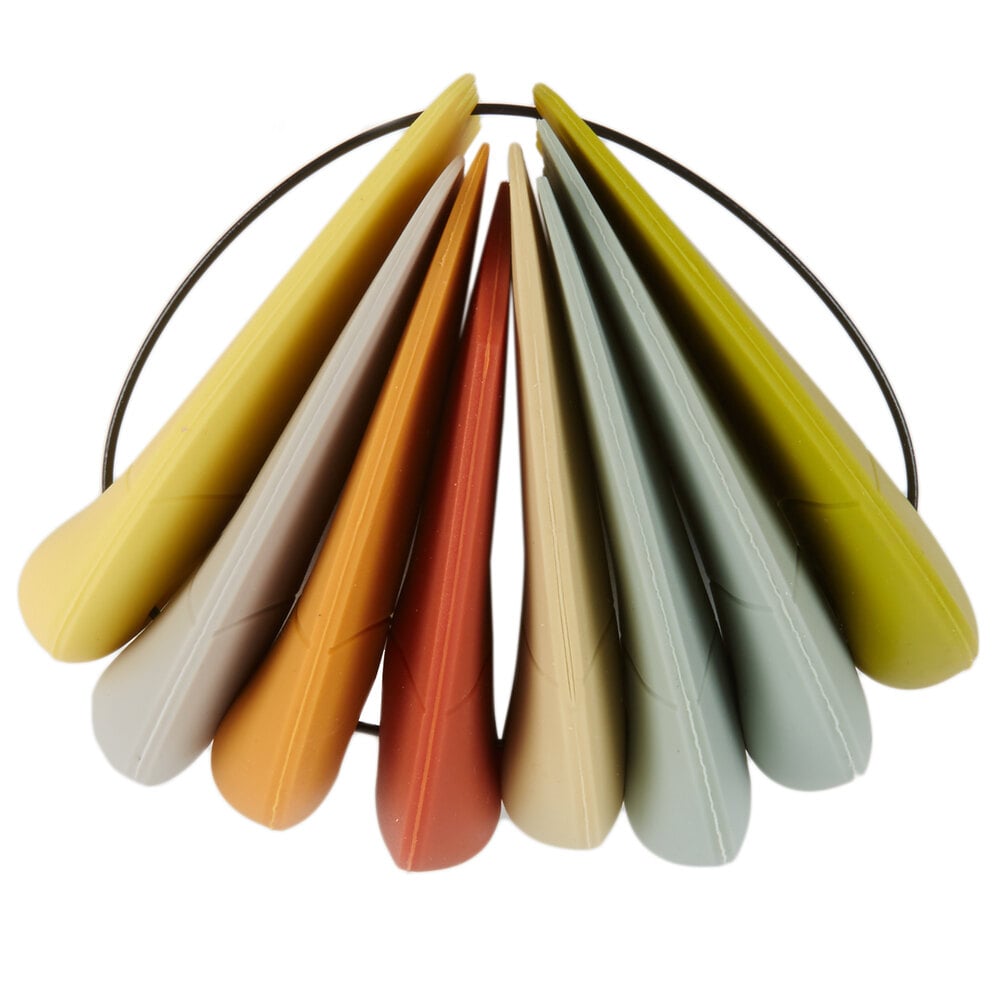 These were bigger than I thought they would be but that is fine. They feel rubbery but stiff. The firmness helps to hold the shapes. They feel solid and durable. They create interesting designs and stay together on the ring fo added convenience.