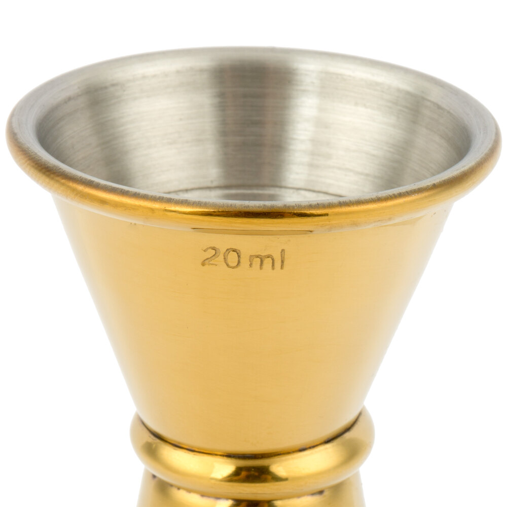 Craft creative cocktails with this Barfly® M37001GD 20 mL and 40 mL gold-plated Japanese style jigger.
