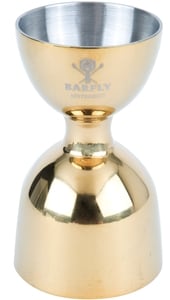 Craft creative cocktails with this Barfly® M37006GD 1 oz. & 2 oz. gold-plated heavy-duty straight rim bell jigger.