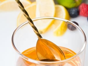 The spoon's flat, machined end ensures easy transportation of fruits and garnishes.
