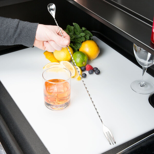 The fork end on this bar spoon is designed to allow you to spear pieces of fruit and garnishes. So during the busiest happy hours and events, you can multitask efficiently while mixing drinks.