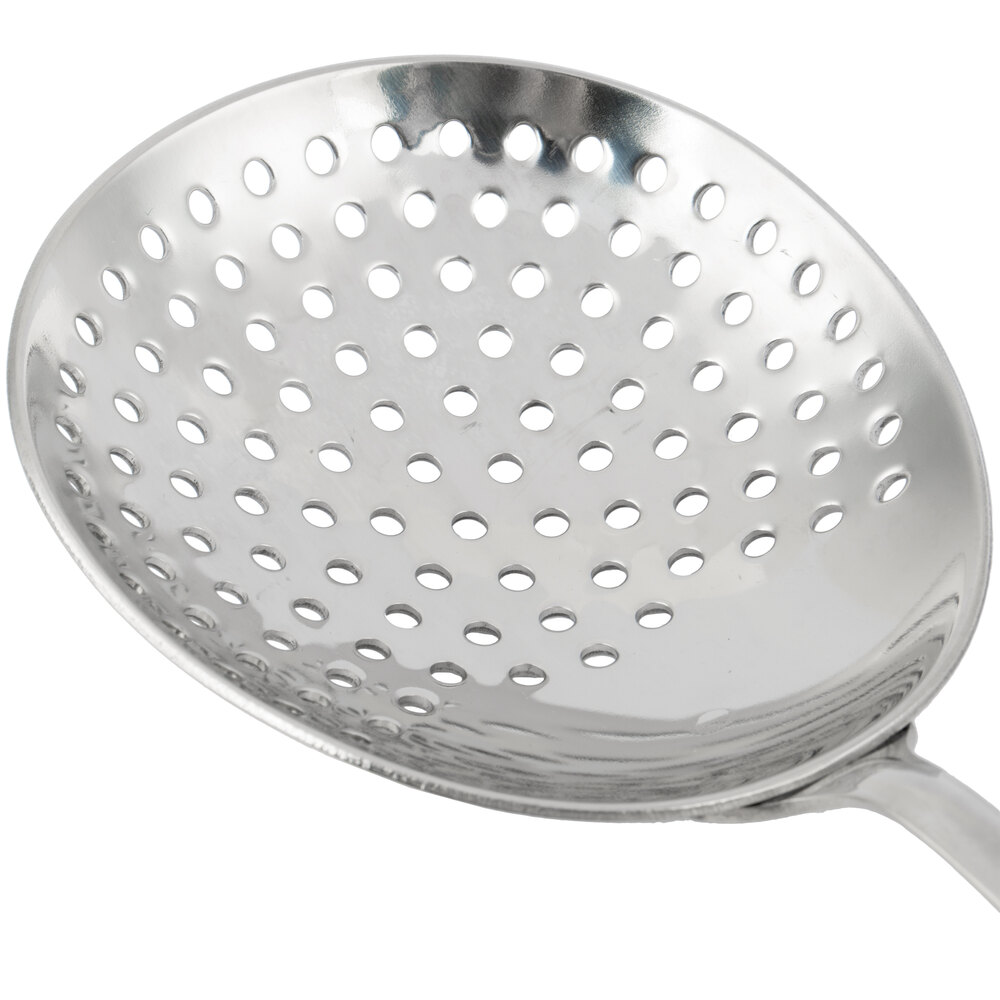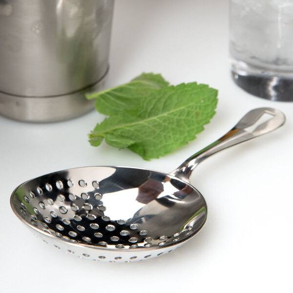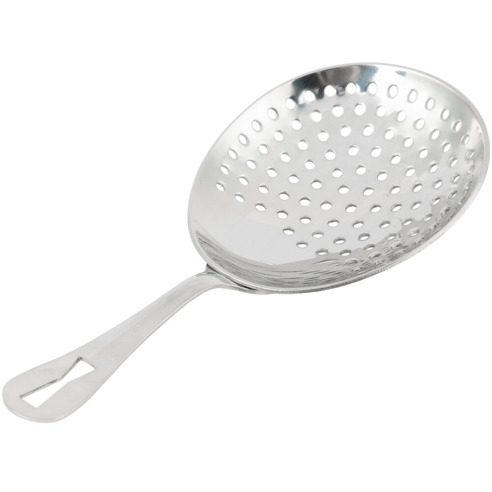 The Barfly® M37071 Hawthorne Strainer is a standout tool for both professional and home bartenders. Crafted from heavy-duty 18/8 stainless steel, it resists pitting and corrosion, ensuring longevity even with frequent use. The four-prong design provides excellent stability when placed on shakers or mixing glasses, while the tightly wound spring effectively filters out ice and other solids. Its ergonomic handle includes a built-in finger stop for a secure grip, enhancing control during use. At 5 5/8 inches in length, it's compatible with most standard barware, making it a versatile addition to any cocktail setup.