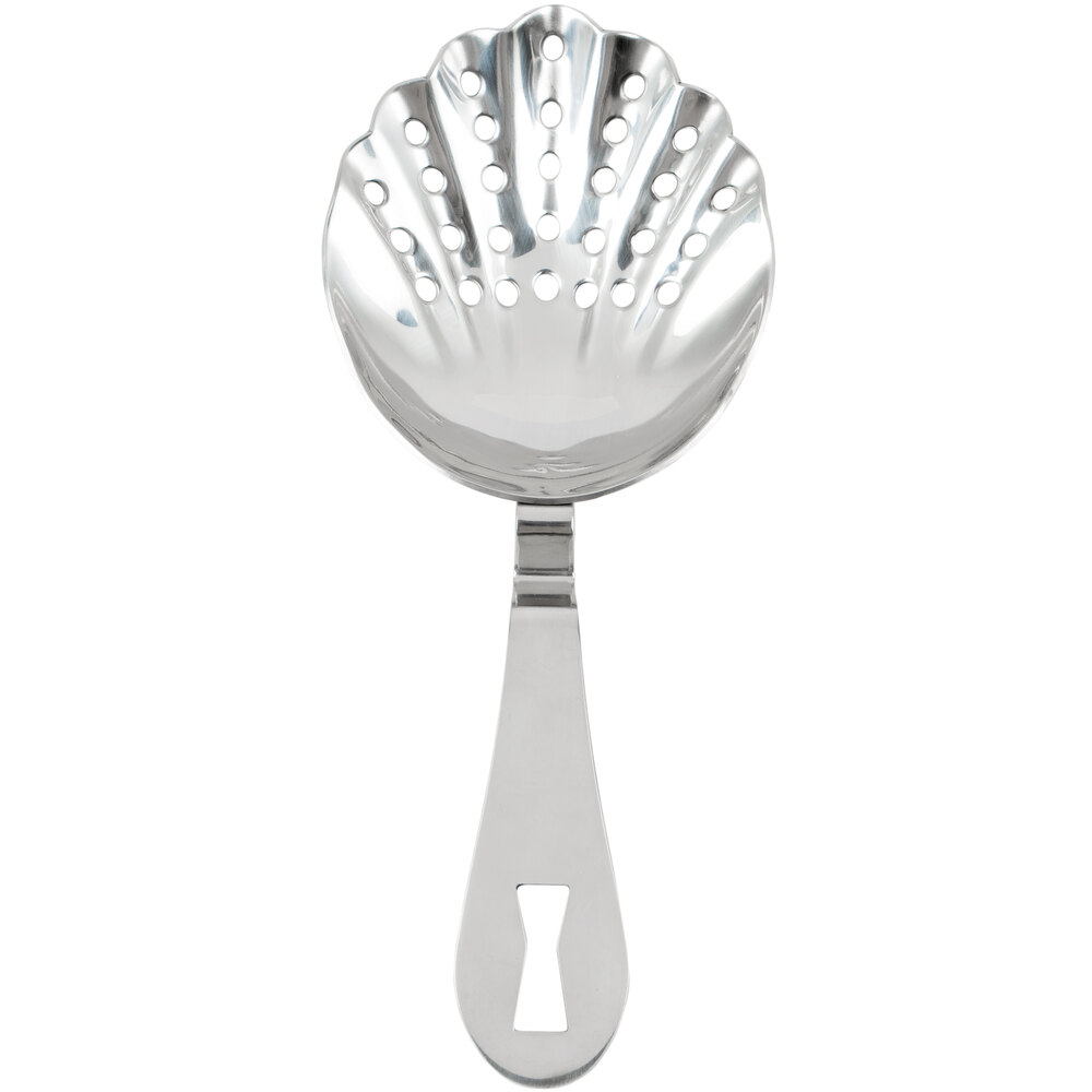 The Barfly® M37071 Hawthorne Strainer is a standout tool for both professional and home bartenders. Crafted from heavy-duty 18/8 stainless steel, it resists pitting and corrosion, ensuring longevity even with frequent use. The four-prong design provides excellent stability when placed on shakers or mixing glasses, while the tightly wound spring effectively filters out ice and other solids. Its ergonomic handle includes a built-in finger stop for a secure grip, enhancing control during use. At 5 5/8 inches in length, it's compatible with most standard barware, making it a versatile addition to any cocktail setup.