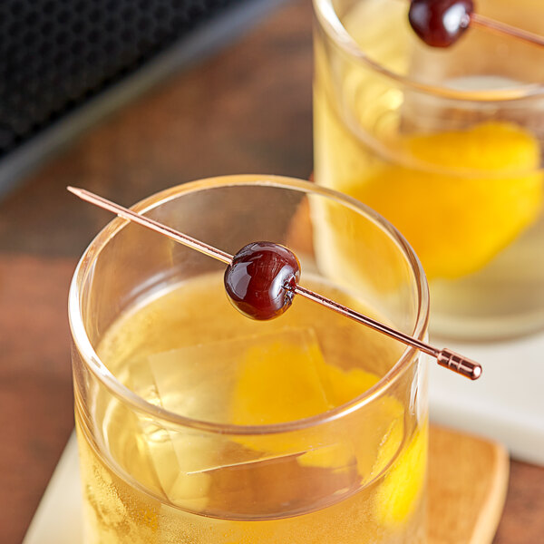 Instead of using a plain, plastic cocktail pick with your specially crafted drinks, try an attractive copper-plated pick that will add to the overall presentation. This pick is perfect for use with your quality cocktails.