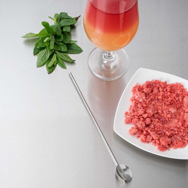 This straw / stirrer's long length makes it perfect for use with Tom Collins and other tall mixed drinks. Its straw design provides guests with a way to effortlessly drink cocktails, while its round end allows for stirring of muddled ingredients to ensure each sip is as flavorful as the last.