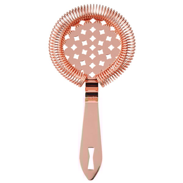 The Barfly® M37071 Hawthorne Strainer is a standout tool for both professional and home bartenders. Crafted from heavy-duty 18/8 stainless steel, it resists pitting and corrosion, ensuring longevity even with frequent use. The four-prong design provides excellent stability when placed on shakers or mixing glasses, while the tightly wound spring effectively filters out ice and other solids. Its ergonomic handle includes a built-in finger stop for a secure grip, enhancing control during use. At 5 5/8 inches in length, it's compatible with most standard barware, making it a versatile addition to any cocktail setup.