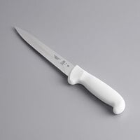 The hollow ground blade makes it easy to resharpen and maintain over many uses. Its straight blade smoothly slides through food, and it's perfect for slicing cooked meat, breaking down fish, or slicing bread. This versatile knife is ideal for any commercial kitchen that serves freshly prepared meat, fish, or bread.