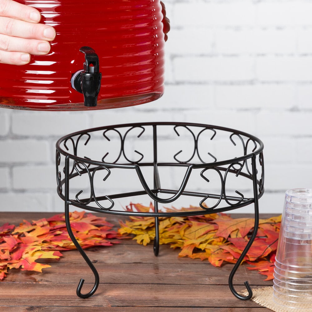Customers appreciate this metal stand for its elegance, sturdiness, and practicality. It fits various beverage dispensers snugly, enhancing table presentation and making it easier to fill cups. The stand is praised for its quality materials and stability, with many recommending it for its functionality and aesthetic appeal.
