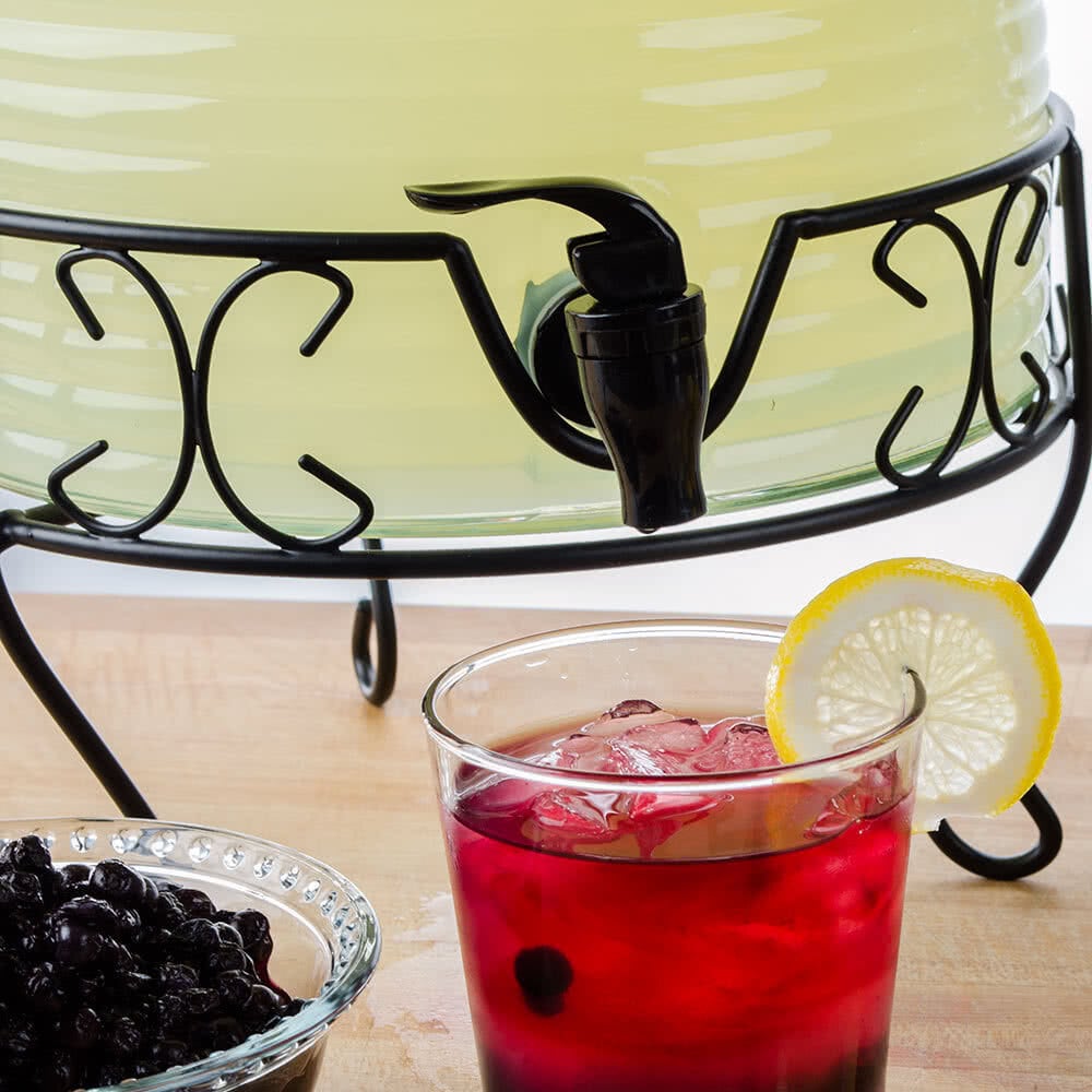 I was so happy when this came in the mail. I purchased the top that resembles a BEE-HIVE that holds 2.5 gallons of any beverage with a spout. And the SPOUT DOES NOT LEAK!!!!!! At night we put the leftover mostly peach ice tea in the fridge and out again the next day. WEB.COM has tea bags by Bromley and 1 tea bag makes believe me, I made this, 1 GALLON OF TEA. WHAT A GREAT DEAL. Especially if you have many people coming in and out for something to drink, it fits perfectly on a countertop. The top container is totally glass so keep back from little tikes. The base is solid black metal and together it is a hit in our house. But to make 2. gallons of your favorite ice tea, lemon aid , juices that are great for your rambusicus children,this is it for you Read More