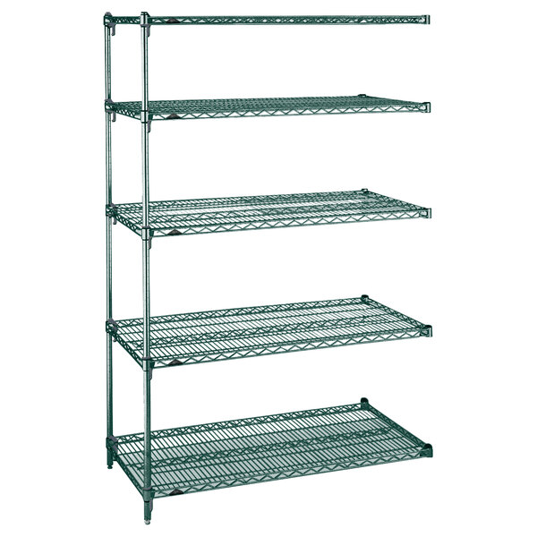 If your inventory is growing and you're running out of storage space, the Metro 5AA327K3 stationary Super Erecta Adjustable 2 Metroseal 3 wire shelving add on unit provides you with everything you need without investing in an entirely new shelving unit! The Metroseal 3 finish provides antimicrobial protection that resists bacteria, mold, mildew, and fungi, making it perfect for damp environments such as walk in freezers and coolers. This convenient kit includes two 74" SiteSelect Metroseal posts, five 18" x 30" Super Adjustable 2 Metroseal shelves, and 10 S-hooks.