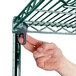 If your inventory is growing and you're running out of storage space, the Metro 5AA347K3 stationary Super Erecta Adjustable 2 Metroseal 3 wire shelving add on unit provides you with everything you need without investing in an entirely new shelving unit! The Metroseal 3 finish provides antimicrobial protection that resists bacteria, mold, mildew, and fungi, making it perfect for damp environments such as walk in freezers and coolers. This convenient kit includes two 74" SiteSelect Metroseal posts, five 18" x 42" Super Adjustable 2 Metroseal shelves, and 10 S-hooks.
