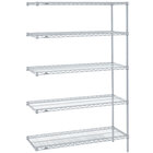 Maximize your shelf space with the Metro 5AN417C Super Erecta adjustable chrome wire stationary add-on shelving unit! It attaches easily to your existing Super Erecta structure to instantly increase the storage capabilities of your facility. This convenient, easy-to-assemble kit includes a total of five 24" x 21" shelves, two 74" SiteSelect posts, and 10 "S" hooks. A durable chrome-plated nickel finish is designed for dry environments that are also low in humidity, making the unit perfect for storing bulk food ingredients, heavy prep tools, disposable goods, and more. Two "S" hooks are supplied per shelf and are used to easily attach the piece to its adjacent unit. In addition, an open wire design minimizes dust accumulation and provides increased visibility of the shelf's contents, ensuring the unit is easy to keep clean and organized.
