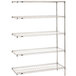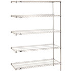 Maximize your shelf space with the Metro 5AN527C Super Erecta adjustable chrome wire stationary add-on shelving unit! It attaches easily to your existing Super Erecta structure to instantly increase the storage capabilities of your facility. This convenient, easy-to-assemble kit includes a total of five 30" x 24" shelves, two 74" SiteSelect posts, and 10 "S" hooks. A durable chrome-plated nickel finish is designed for dry environments that are also low in humidity, making the unit perfect for storing bulk food ingredients, heavy prep tools, disposable goods, and more. Two "S" hooks are supplied per shelf and are used to easily attach the piece to its adjacent unit. In addition, an open wire design minimizes dust accumulation and provides increased visibility of the shelf's contents, ensuring the unit is easy to keep clean and organized.