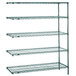 Maximize your shelf space with the Metro 5AN557K3 Super Erecta Metroseal 3 adjustable wire stationary add-on shelving unit! It attaches easily to your existing Super Erecta structure to instantly increase the storage capabilities of your facility. This convenient, easy-to-assemble kit includes a total of five 48" x 24" shelves, two 74" SiteSelect posts, and 10 "S" hooks. Perfect for damp environments such as walk-in freezers and refrigerators, the Metroseal 3 epoxy finish provides antimicrobial protection that resists bacteria, mold, mildew, and fungi that causes odors, stains, and degradation. Two "S" hooks are supplied per shelf and are used to easily attach the piece to its adjacent unit. In addition, an open wire design minimizes dust accumulation and provides increased visibility of the shelf's contents, ensuring the unit is easy to keep clean and organized.